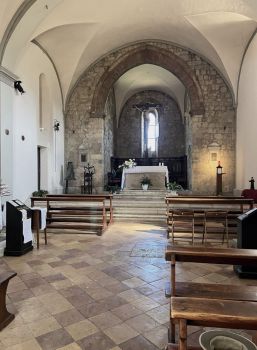 Am Ufer des Flusses Chienti, nahe der Autobahn zwischen Civitanova und Macerata, befindet sich in der Landschaft von Montecosaro die rund tausend Jahre alte Kirche der Verkündigung, ein bedeutendes Beispiel romanischer Kunst in Italien. Die Kirche war eigentlich geschlossen, doch ein freundlicher Pater ließ mich hinein und gestattete mir sogar, den ersten Stock zu betreten. Mich hat die Kirche tief beeindruckt – schlicht, ohne jeden Prunk, und gerade deshalb so eindrucksvoll.